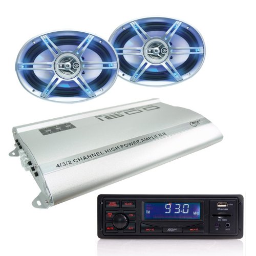 Beschreibung:Sowohl optisch als auch akustisch ein Genuss! Damit wird Car-HiFi zum Erlebnis für die Sinne! Hoch belastbar, satte Bässe, feine Höhen und Top-Verarbeitung mit besten Materialien und all das zu einem unschlagbaren Preis.Mit der silbernen Endstufe SilverSonic 1600 bringen Sie Ihren mobilen Sound auf Drehzahl! Die ausgereifte Technik bietet robuste Qualität mit satten Leistungsreserven auch für Impulsspitzen im Bassbereich.Die Lautsprecher LED-699 überzeugen durch akustische Brillianz und geniale Optik. Die Lautsprecher sind durch ihr 2-Wege Koaxialsystem sehr flexibel einsetzbar und für alle Musikrichtungen geeignet.Vergessen Sie das CD-Chaos im Handschuhfach oder in der Seitentasche. Mit dem Autoradio Macau von MEGAKICK können Sie Ihre Musik einfach über SD-Karten, USB-Stick oder auch über Ihren MP3-Player abspielen. Diese Speichermedien bieten einen größeren Speicherplatz als handelsübliche CDs.Endlich keine Mechanik mehr, die verschleißen kann. USB-Sticks u...