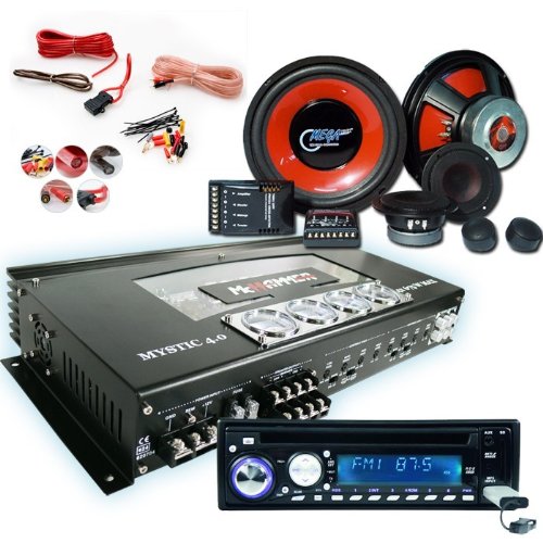 Beschreibung:Get your Party started! Dieses Komplett-Set „geht ab“ wie die Feuerwehr!Mit dem Autoradio Megakick Vegas, der Endstufe Mystic 4.0 und dem Lautsprecher Set Ibiza 500 erhalten Sie starken Sound zum Spitzenpreis!Beinhaltet alle Komponenten zu einer schnellen und einfachen Installation eines Autoverstärkers und Lautsprecherset.Lieferumfang:• 1x Autoradio Megakick Vegas• 1x Endstufe Mystic 4.0• 1x Lautsprecher Set Ibiza 500• 1x Kabel Set Autoradio Megakick VegasAutoradio Vegas mit CD+MP3, USB+SD-Card, AUX-Eingang, RDS. Dieses Multitalent von der etablierten Marke MEGAKICK begeistert durch seine Top-Ausstattung. Inklusive deutscher AnleitungDetails: • FM-Radio mit RDS• ID3-Tag (Anzeige des Musiktitels)• beleuchtetes Display• vollelektronische Klangregelung• 4x40 Watt Hochleistungs-Endstufe• abspielbare Medien: CD/MP3, USB/SD-Card (beides bis 4GB) und AUX-Eingang• LineOut für Anschluß einer Endstufe• abnehmbares Display• inkl. deutscher AnleitungE...