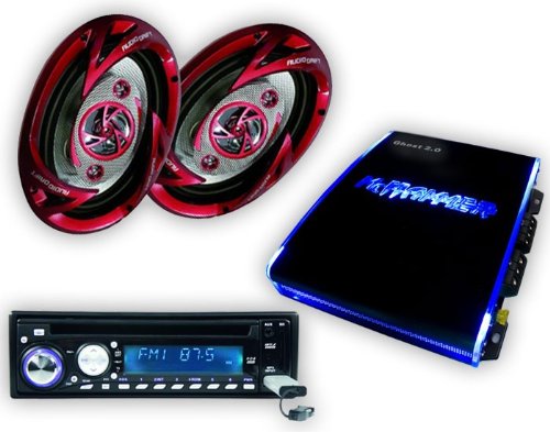 Beschreibung:Mehr Musik-Leistung zum günstigsten Preis. Die Endstufe Ghost 2.0 von McHammer kombiniert mit dem ovalen 4-Wege-System 6x9 von Vancouver liefern einen unheimlich guten Klang und einen kräftigen Bass. Ideal zur Ergänzung eines bestehenden Hifi-Systems. Abgerundet wird das Set durch das Autoradio „Bermuda“ von Megakick mit mega-vielen Funktionen.Lieferumfang:• 1x 1350 Watt Auto Endstufe LED Beleuchtung Ghost 2.0• 1x PAAR 1000W Auto Einbaulautsprecher Vancouver 6x9• 1x Autoradio CD/MP3 USB MULTI Display Megakick Vegas     1350 Watt Auto Endstufe mit LED-Beleuchtung Ghost 2.0Technische Daten:• Leistung 2x 675 Watt• regelbare Hoch- & Tiefpaßfilter• Eingangsempfindlichkeit für Front + Rear getrennt regelbar• 2-Kanalbetrieb• 2x 50 Watt RMS• Abschaltung bei Kurzschluss, Überspannung & Übertemperatur• Ein/Aus über das Autoradio• 20-20.000Hz• Klirrfaktor 90dB• Maße (LxBxH): 260 x 200 x 60 mm  Lautsprecher Set Vancouver 6x9 Features:• 100...