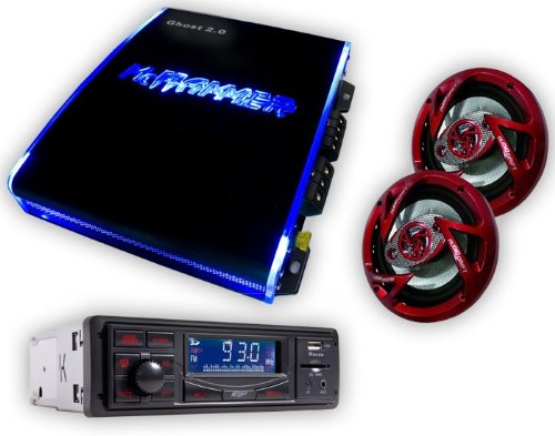 Beschreibung:Mehr Musik-Leistung zum günstigsten Preis. Die Endstufe Ghost 2.0 von McHammer kombiniert mit dem runden 3-Wege-System 6.5 (6,5'/16,5cm) von Vancouver liefern einen unheimlich guten Klang und einen kräftigen Bass.Ideal zur Ergänzung eines bestehenden Hifi-Systems oder zum Austausch bestehender Systeme. Die Lautsprecher passen in die meisten originalen Lautsprecher-Cases.Abgerundet wird das Set durch das digitale Autoradio „Macau“ von Megakick mit USB-Slot und SD/MMC-Card-Reader.Lieferumfang:1x 1350 Watt Auto Endstufe LED Beleuchtung Ghost 2.01x Paar 600W Auto Einbaulautsprecher Vancouver 6.51x Autoradio Digital 4x30W AUX USB/SD Slot Megakick Macau1350 Watt Auto Endstufe mit LED-Beleuchtung Ghost 2.0Technische Daten:• Leistung 2x 675 Watt• regelbare Hoch- & Tiefpaßfilter• Eingangsempfindlichkeit für Front + Rear getrennt regelbar• 2-Kanalbetrieb• 2x 50 Watt RMS• Abschaltung bei Kurzschluss, Überspannung & Übertemperatur• Ein/Aus über das Autoradio