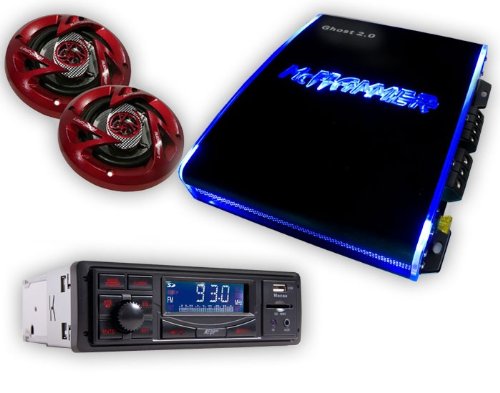 Beschreibung:Mehr Musik-Leistung zum günstigsten Preis. Die Endstufe Ghost 2.0 von McHammer kombiniert mit dem runden 2-Wege-System 4.0 (4'/10cm) von Vancouver liefern einen unheimlich guten Klang und einen kräftigen Bass. Ideal zur Ergänzung eines bestehenden Hifi-Systems oder zum Austausch bestehender Systeme. Die Lautsprecher passen in die meisten originalen Lautsprecher-Cases. Abgerundet wird das Set durch das digitale Autoradio „Macau“ von Megakick mit USB-Slot und SD/MMC-Card-Reader.Lieferumfang:• 1x 1350 Watt Auto Endstufe LED Beleuchtung Ghost 2.0• 1x Paar 240W Auto Einbaulautsprecher Vancouver 4.0• 1x Autoradio Digital 4x30W AUX USB/SD Slot Megakick Macau 1350 Watt Auto Endstufe mit LED-Beleuchtung Ghost 2.0Technische Daten:• Leistung 2x 675 Watt• regelbare Hoch- & Tiefpaßfilter• Eingangsempfindlichkeit für Front + Rear getrennt regelbar• 2-Kanalbetrieb• 2x 50 Watt RMS• Abschaltung bei Kurzschluss, Überspannung & Übertemperatur• Ein/Aus über das...