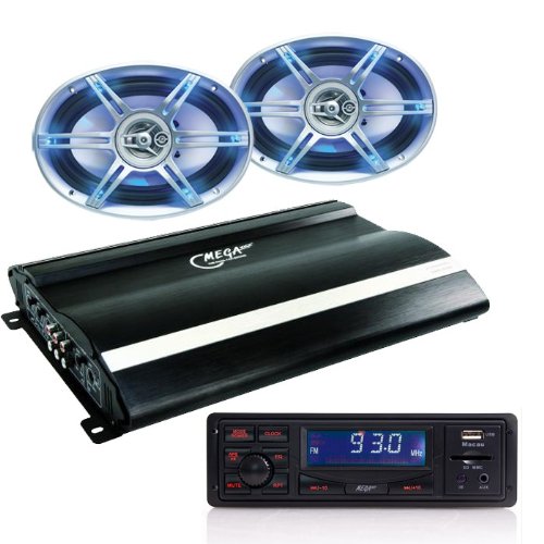 Beschreibung:Sowohl optisch als auch akustisch ein Genuss! Damit wird Car-HiFi zum Erlebnis für die Sinne! Hoch belastbar, satte Bässe, feine Höhen und Top-Verarbeitung mit besten Materialien.Mit dem Car-Amplifier Megakick 2.4 und dem Lautsprecher Set LED-699 erhalten Sie starken Sound zum Spitzenpreis!Die Lautsprecher LED-699 überzeugen durch akustische Brillianz und geniale Optik. Die Lautsprecher sind durch ihr 2-Wege Koaxialsystem sehr flexibel einsetzbar und für alle Musikrichtungen geeignet.Vergessen Sie das CD-Chaos im Handschuhfach oder in der Seitentasche. Mit dem Autoradio Macau von MEGAKICK können Sie Ihre Musik einfach über SD-Karten, USB-Stick oder auch über Ihren MP3-Player abspielen. Diese Speichermedien bieten einen größeren Speicherplatz als handelsübliche CDs.Endlich keine Mechanik mehr, die verschleißen kann. USB-Sticks und SD-Karten sind dazu auch noch unempfindlicher gegenüber Schlaglöchern und anderen schlechten Straßenbelägen.Dank der im Paket ent...