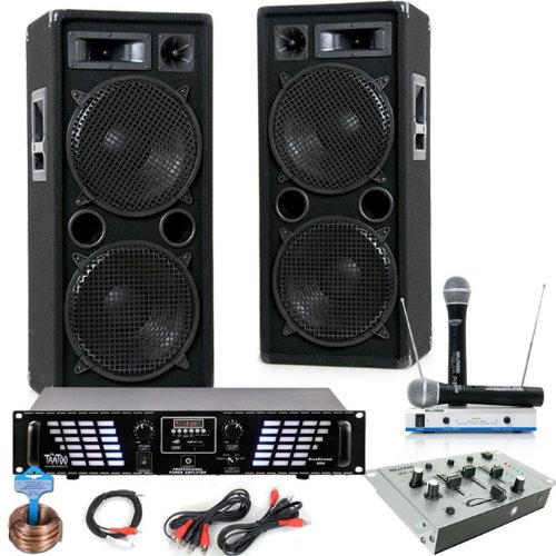 Beschreibung: Ein geniales Party Set. Ein muss für jede Party. Dieses DJ Set bringt jede Tanzfläche zum Beben. Mit dem Bluestream 1000 Verstärker ist dieses Set unschlagbar.Große Leistung zum kleinen Preis: 2 Stück 1000 Watt Boxen! Die robusten Full-Range Boxen sorgen mit einer Gesamtleistung von 2000 Watt für ein tolles Klangerlebnis.Diese Serie  ist von vornherein mit den besten Komponenten bestückt und bietet in allen Lautstärken stets ein treues Klangbild. Prägnante Höhen, weiche Mitten und druckvolle Bässe garantieren auch bei hoher Belastung einen satten Sound.Das mit Filz bezogene Holzgehäuse ist robust und verträgt problemlos auch gröbere Stöße. Ausladende Griffe und stabile Bauweise machen diese Boxen ideal auch für mobilen Einsatz.Die kraftvolle Profi Endstufe Bluestream 1000 sorgt mit einer Leistung von 3000 Watt für ein unverwechselbares Klangerlebnis. Das MX-22 ist das ideale Einsteigermischpult, das sowohl im Partykeller als auch für Hobby-DJ`s und sol...