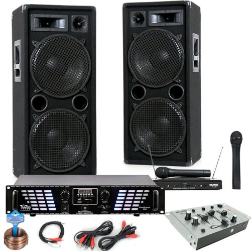 Karaoke PA Anlage Boxen MP3 USB SD Endstufe Mischpult Funkmikrofonset