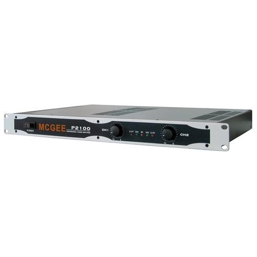 McGee PA Endstufe P2100. Diese Qualitäts-Endstufe kommt überall dort zum Einsatz wo kleinere oder mittlere Musik-Events statt finden. Sehr robustes 19" Metall-Gehäuse, 2 Lautstärkeregler auf der Frontseite, alle Betriebszustände über LEDs ablesbar, Signa