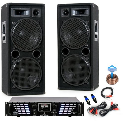 Beschreibung: Ein geniales Party Set. Ein muss für jede Party. Dieses DJ Set bringt jede Tanzfläche zum Beben. Mit dem Bluestream 1000 Verstärker ist dieses Set unschlagbar.Die robusten Full-Range Boxen sorgen mit einer Gesamtleistung von 2000 Watt für ein tolles Klangerlebnis.Diese Serie ist von vornherein mit den besten Komponenten bestückt und bietet in allen Lautstärken stets ein treues Klangbild. Prägnante Höhen, weiche Mitten und druckvolle Bässe garantieren auch bei hoher Belastung einen satten Sound.Das mit Filz bezogene Holzgehäuse ist robust und verträgt problemlos auch gröbere Stöße. Ausladende Griffe und stabile Bauweise machen diese Boxen ideal auch für mobilen Einsatz.Die kraftvolle Profi Endstufe Bluestream 1000 sorgt mit einer Leistung von 3000 Watt für ein unverwechselbares Klangerlebnis.Lieferumfang:• 2x PA Boxen Omnitronic DX-2222• 1x Verstärker USB SD Bluestream 1000• 1x 10m Lautspecherkabel• 2x cinch-Verbindung 1,5m stereo, Stecker/Stecke...
